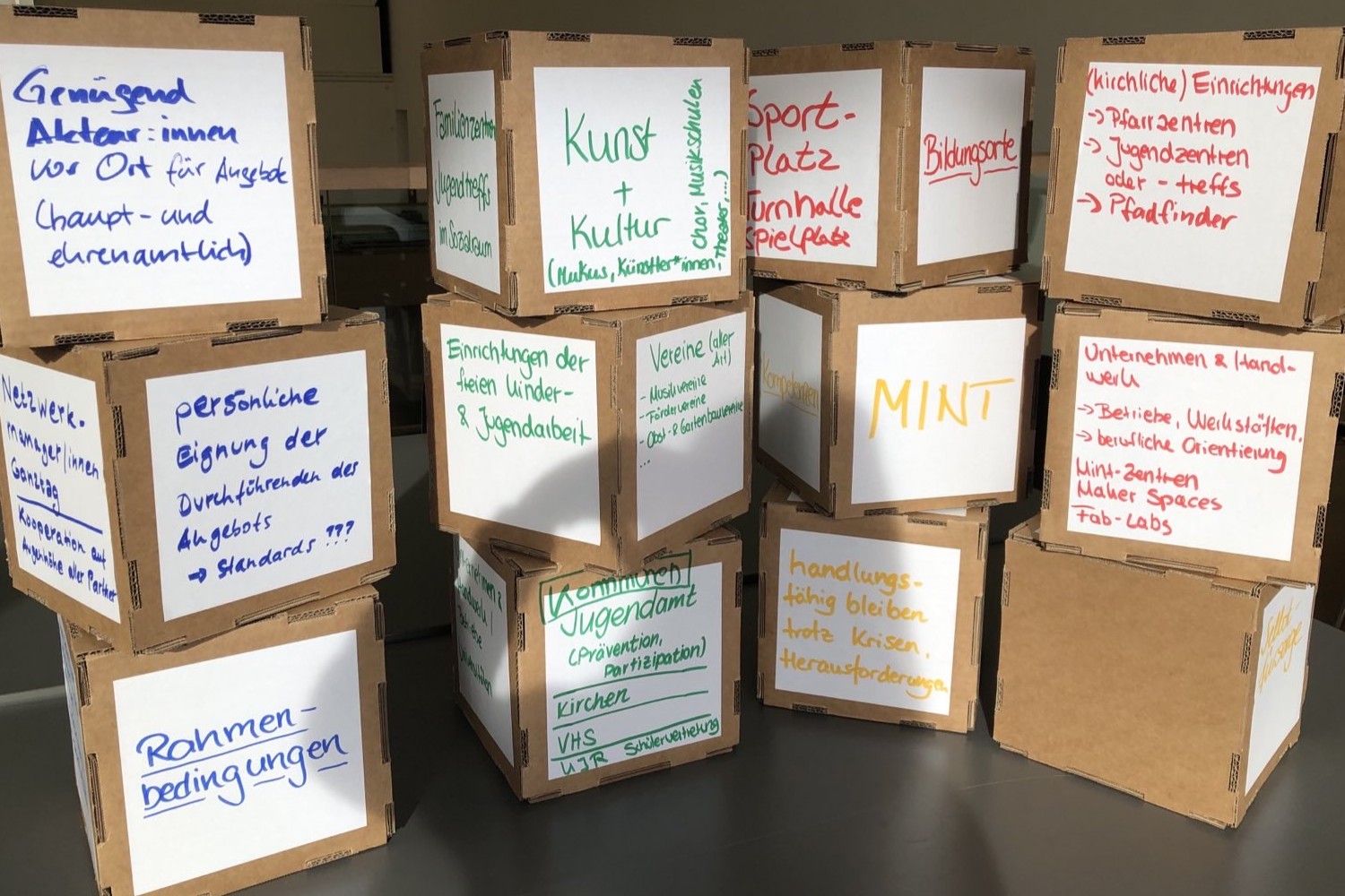 Am zweiten Tag erarbeiteten die Konferenzteilnehmenden in Transfer-Workshops hilfreiche Strukturen, Prozesse und Tools für die Umsetzung nachhaltiger Bildungskooperationen von Kommune und Zivilgesellschaft. Die REAB Brandenburg führte einen Workshop zum Thema „Zivilgesellschaft als Partner im Ganztag: Darf’s ein bisschen mehr sein?“ durch. Dr. Claudia Nickel vom Landesverband der Kita- und Schulfördervereine Berlin-Brandenburg e.V. und Michael Wasielewski vom Programm „Sport vernetzt“, Phoenix Hagen e.V., stellten die Potenziale strukturierter Kooperationen in der ganztägigen Bildung vor. Anschließend erarbeiteten die Workshopteilnehmenden Bausteine für die Bildungslandschaft der Zukunft.